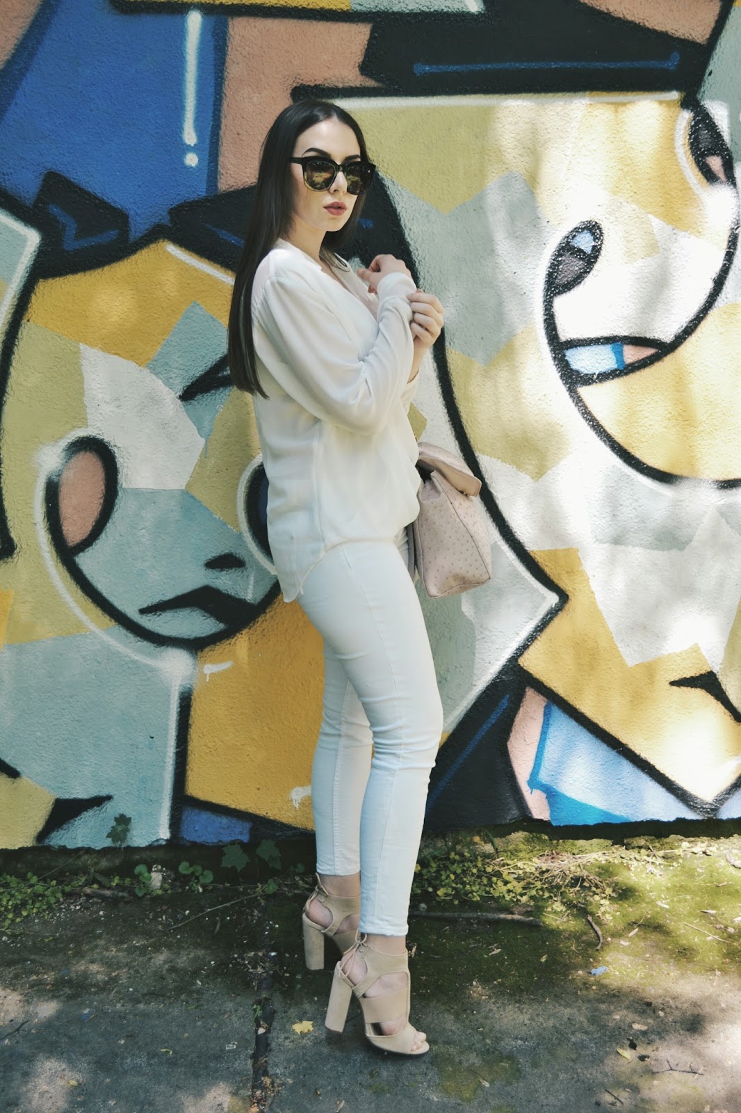 I keep making these awfully long blogging breaks for no reason other than the fact that I've gotten really lazy. I won't be saying how this will never happen, because it just might, but I'll do my best it doesn't. Anyway, I have teamed up with AmiClubWear.com who were kind enough to send me these fabulous nude heels which I'm absolutely in love with. Although I usually avoid wearing heels, I just had to have these as it was love at first sight. I also wanted to comment on the comfort, but let's be real here, no heels are ever comfortable, but they are very true to the size and fit perfectly. I decided to pair these babies with white jeans and a white shirt, as you can see in the photos.
